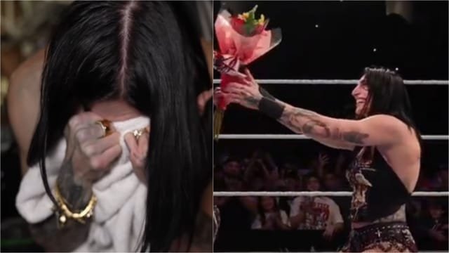 Rhea Ripley celebrated Valentine’s Day at a WWE Live Event. On a house show in Lubbock, Texas, she gifted a bouquet to IYO SKY. She got down on her knees and handed over the bouquet to her tag team partner. As a result, Mami’s “ex” is seemingly heartbroken.